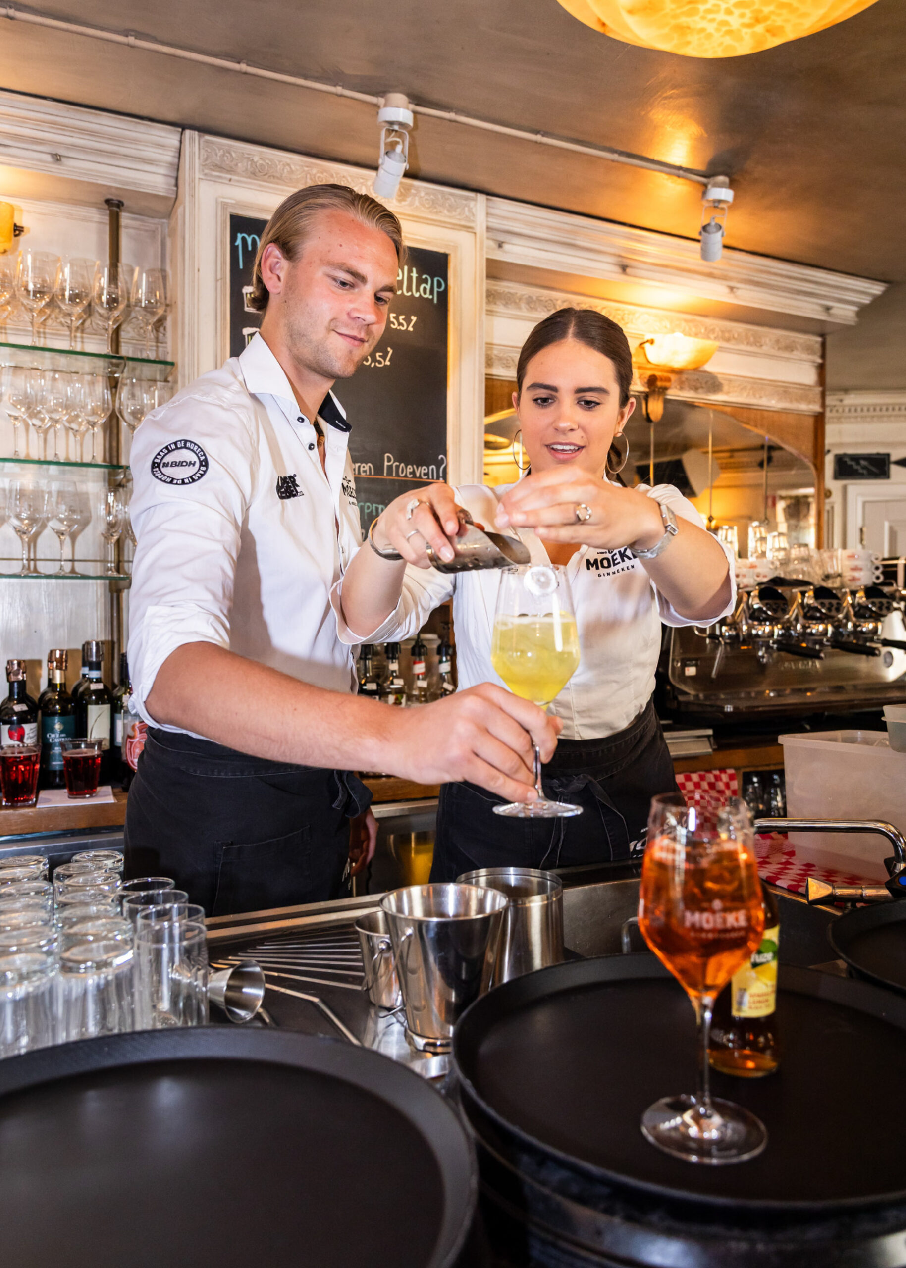 Onder de 6 personen kun je gewoon binnenlopen. Neem bij een volle bezetting even plaats aan de bar, dan zorgt Moeke ervoor dat je snel een plek krijgt. Moeke reserveert geen tafels op het terras.
